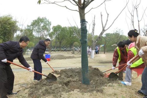 3月11日,在第48个植树节来临之际,学校举行“植杏迎春,绿意启程”主题植树活动。副校长潘志明与师生代表共同参加活动。